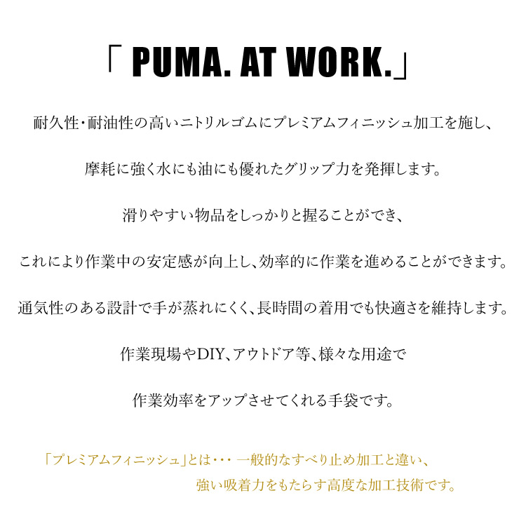 プーマ PUMA 作業 手袋 ニトリルゴム 耐油性 グリップ グローブ プレミアムフィニッシュ PUMA. AT WORK PG-1500 (2枚までネコポス対応)