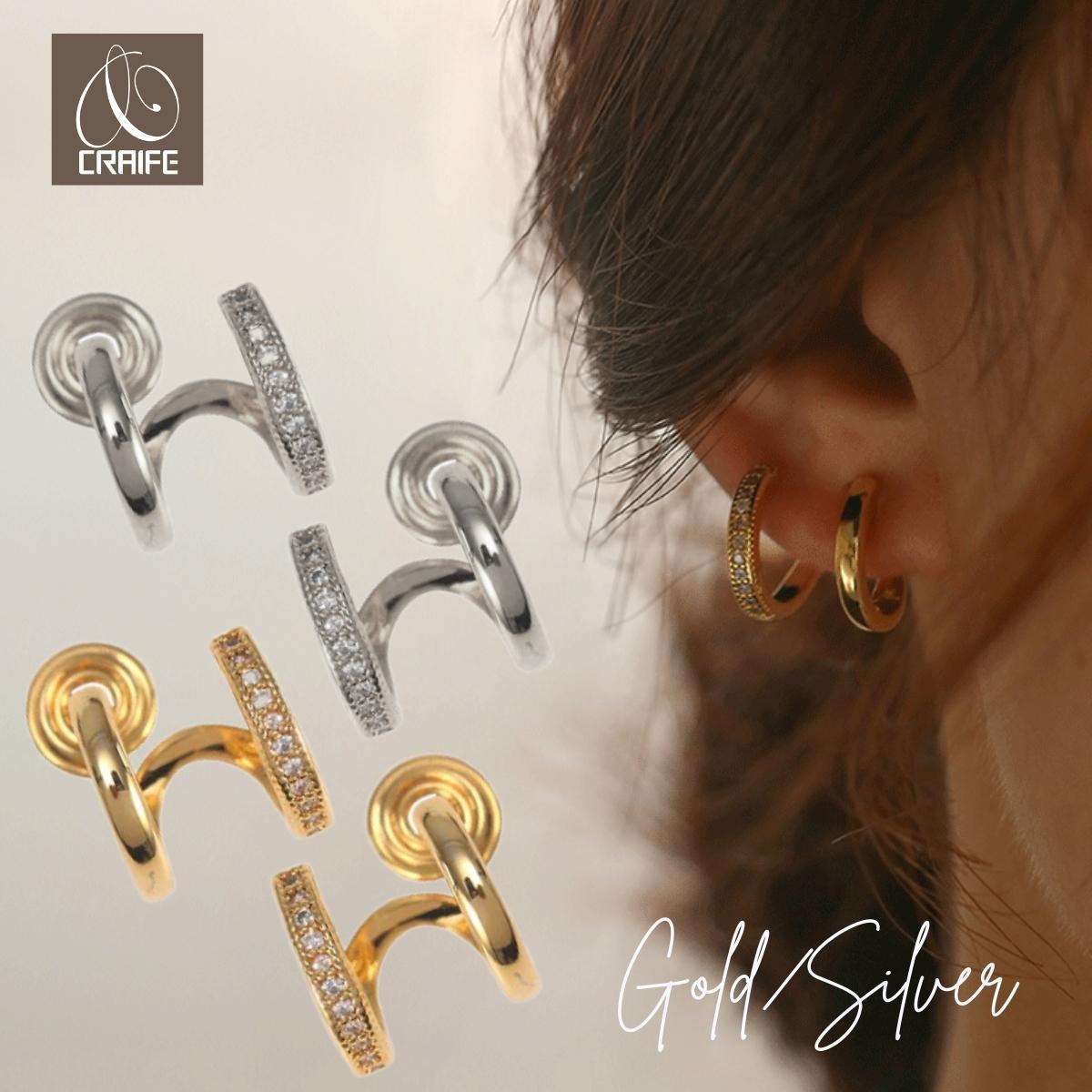 | 特徴 | 2連 ダブルラインが特徴のイヤリング。 シリコンカバー付きで1日付けても痛くならない。 |
