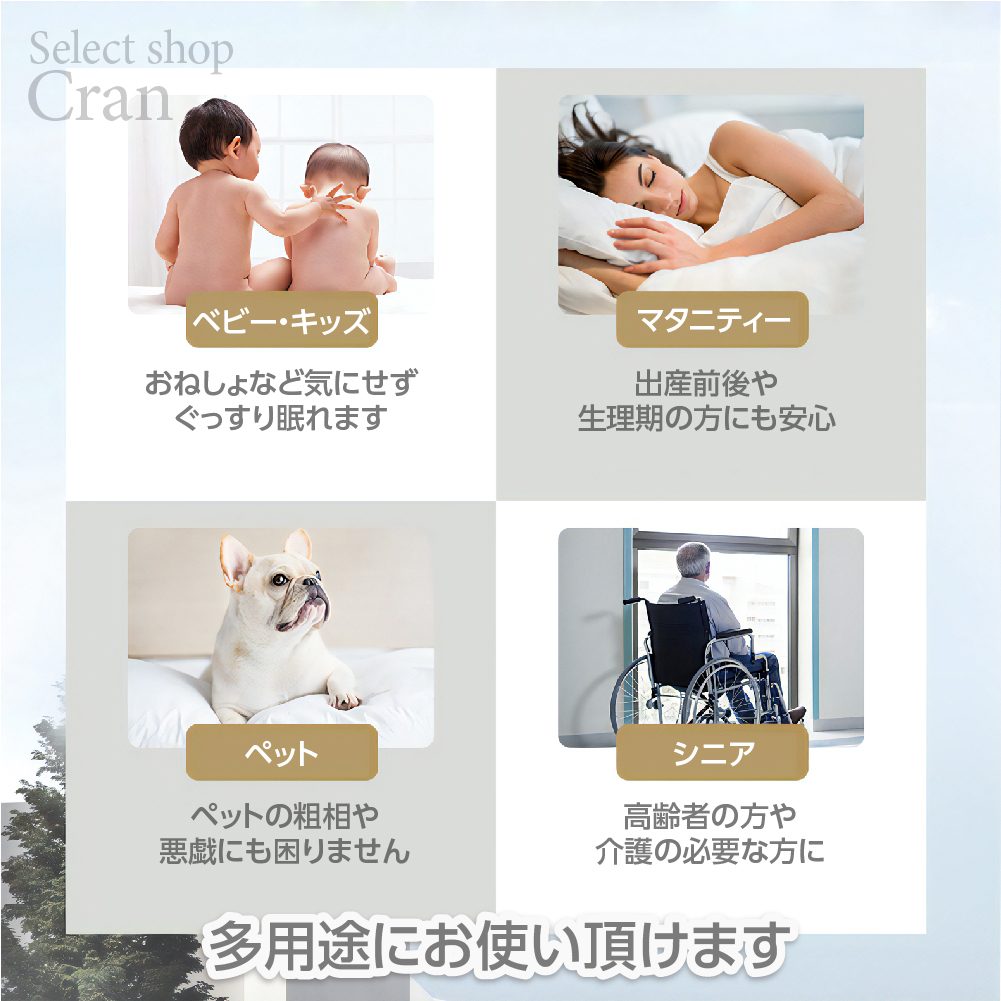 ペット対策、お子様のおねしょ対策、老人の失禁対策、衛生対策シーツとしてお使い頂けます。