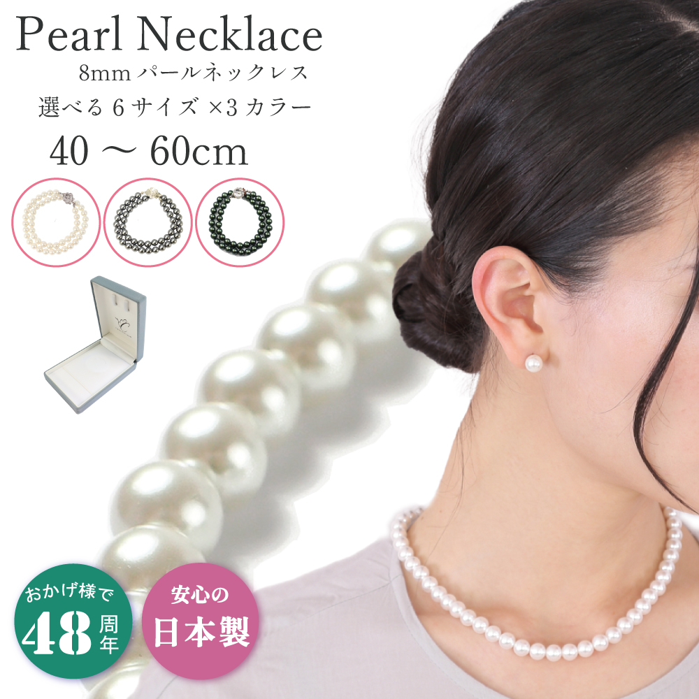 パール ネックレス 冠婚葬祭 貝パール 8mm 日本製 真珠 ショート ロング 自社生産 セレモニー ホワイト グレー ブラック