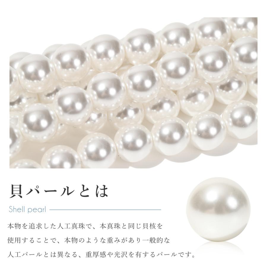 フォーマル な装いに合わせやすい 8mm パール珠を採用。ネックレスの長さは 40/42/46/50/56の5サイズを用意。さらに8mm珠、9mm珠サイズ(ホワイトのみ)のパールを使用したイヤリング・ピアスもセットに!