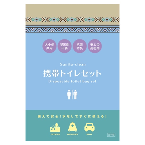 材 質:〔サニタクリーン便袋〕ポリエチレン(バイオマスポリエチレン30%)〔高速吸水凝固シート〕紙パルプ、高吸水性樹脂ポリマー、不織布〔高密閉チャック袋〕ナイロン、ポリエチレン