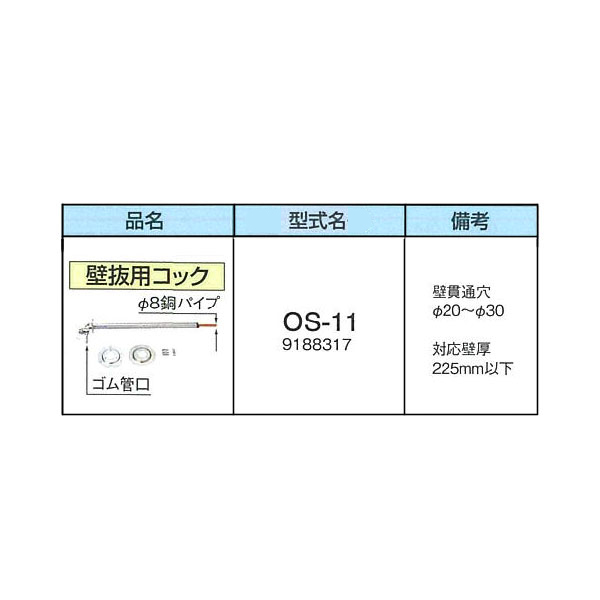 商品説明 壁貫通穴φ20〜φ30、対応壁厚225mm以下