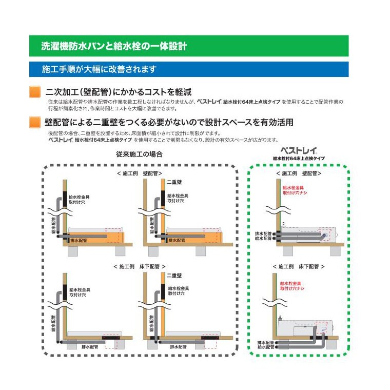 あすつく対応 ■ 送料無料 給水栓付64床上点検タイプ ドラム式洗濯機対応 洗濯機防水パン スノーホワイト SINANEN シナネン USBS-6464SNW 洗濯機パン