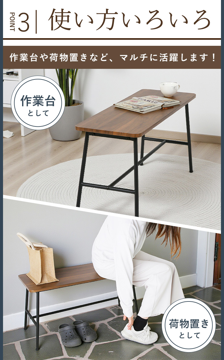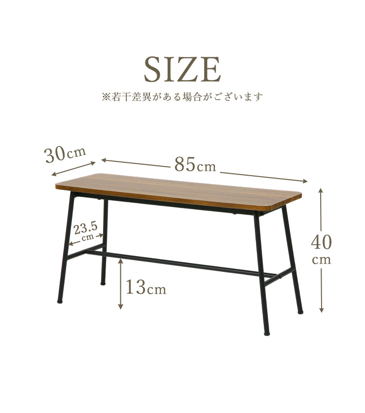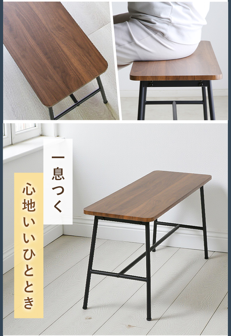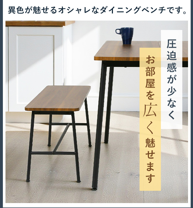 ダイニングベンチ ベンチ 幅85cm 椅子 木製 木目 アイアン アジャスター 異素材 スタイリッシュ お洒落 ダイニング 背もたれ無し モダン コンパクト 作業台 玄関
