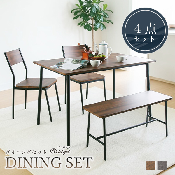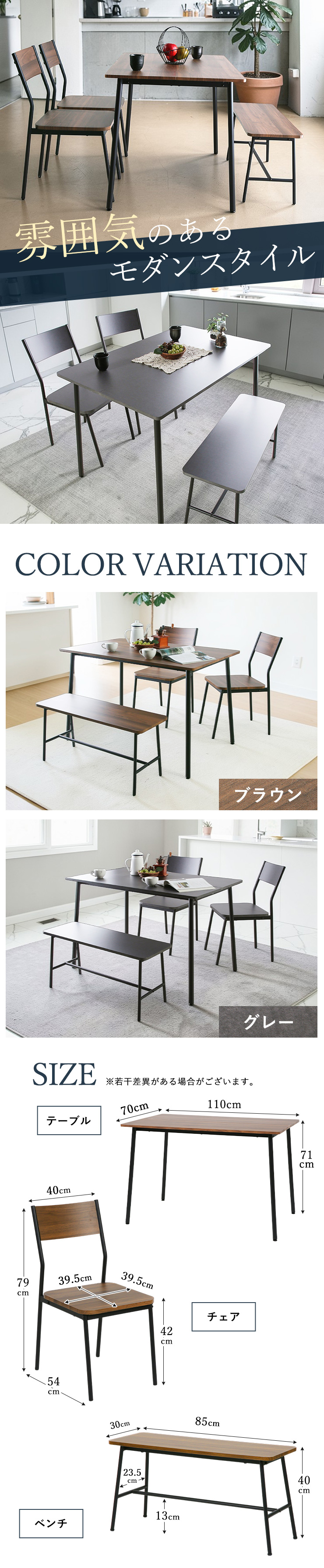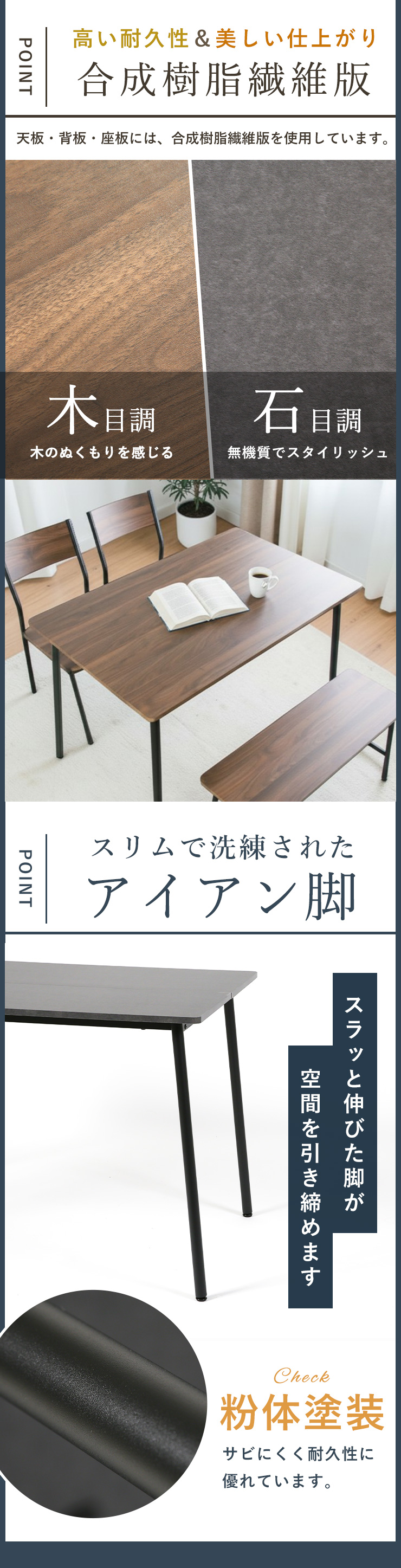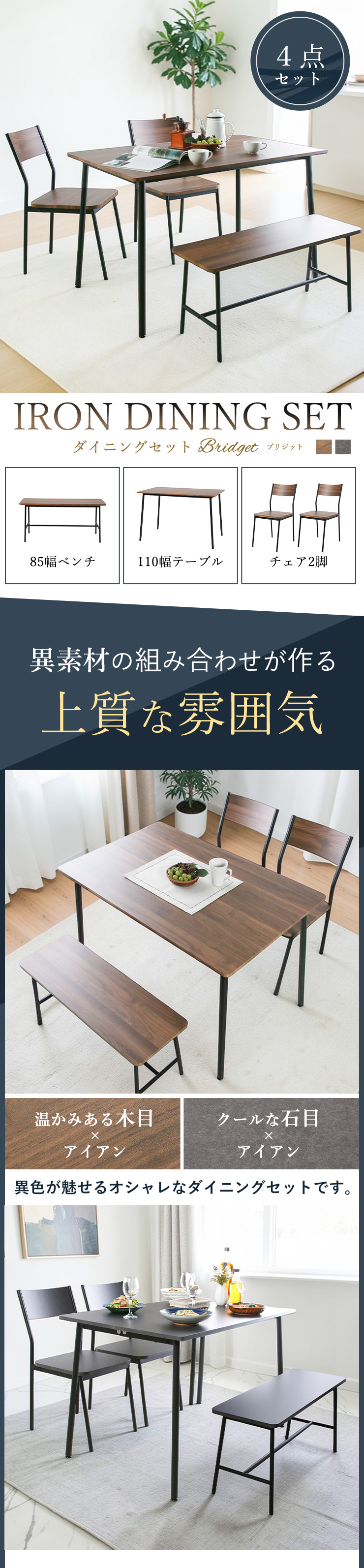 新商品特別価格】ダイニングセット 4点セット シンプル コンパクト スチール 木製 アイアン テーブル 幅110cm 角丸加工 チェア 椅子 ベンチ幅85cm