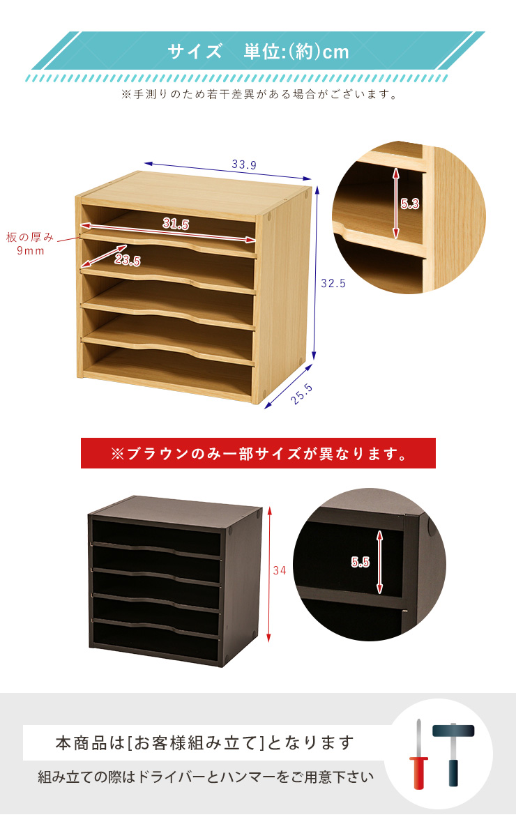 (約)幅33.9cm 奥行き25.5cm 高さ32.5cm(ブラウン:高さ34cm)