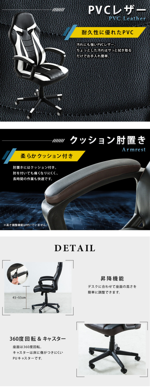 ゲーミングチェア オフィスチェア デスクチェア パソコンチェア チェア チェアー ガス圧昇降 昇降式 ロッキング ゲーミング デスクワーク テレワーク