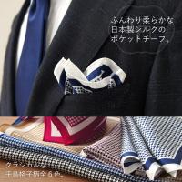 ポケットチーフ シルク 千鳥格子柄 6色から選択可 日本製 /結婚式 パーティー