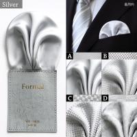 ポケットチーフ メンズ 台紙付き(ワンタッチ) ホワイト シルバー 各4織柄から選択可(パフド)/結婚式 披露宴 パーティー ポイント消化