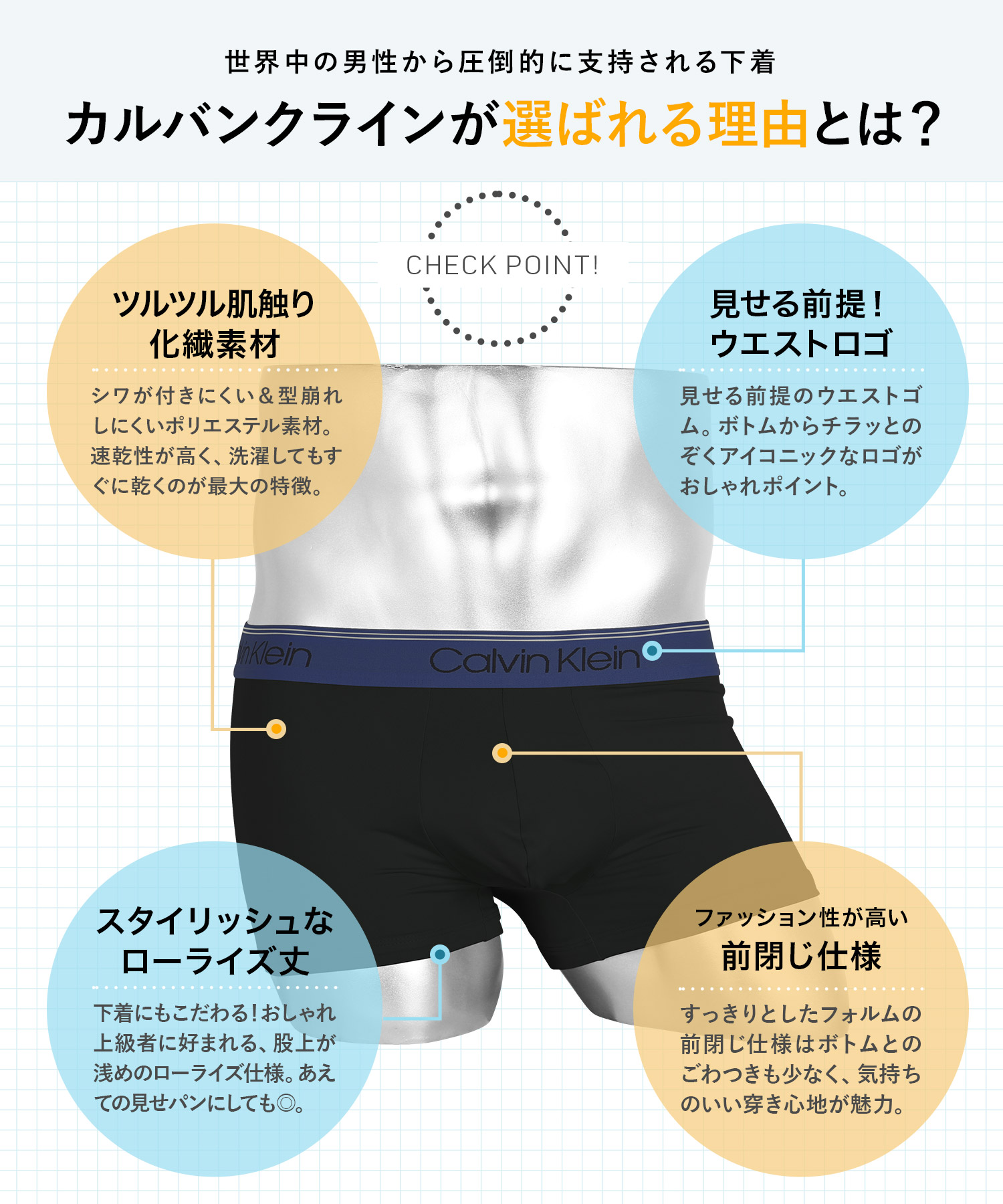 クラシックなフィット感と滑らかなソフトタッチのマイクロファイバー素材で、CKらしいスタイリッシュなシルエットと快適な穿き心地を兼ね備えたハイブリッドなアイテム。