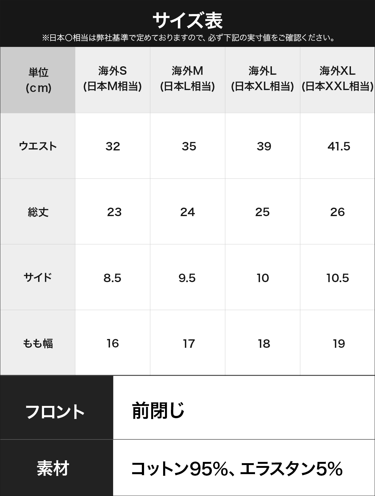 素材:コットン95%、エラスタン5%