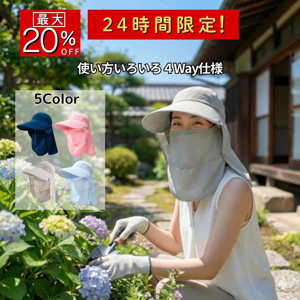 日よけ帽子 レディース つばひろ おしゃれ 大きめ 紫外線カット 日焼け防止 女性 4way 折りたたみ 農作業 ガーデニング フェイスマスク アウトドア