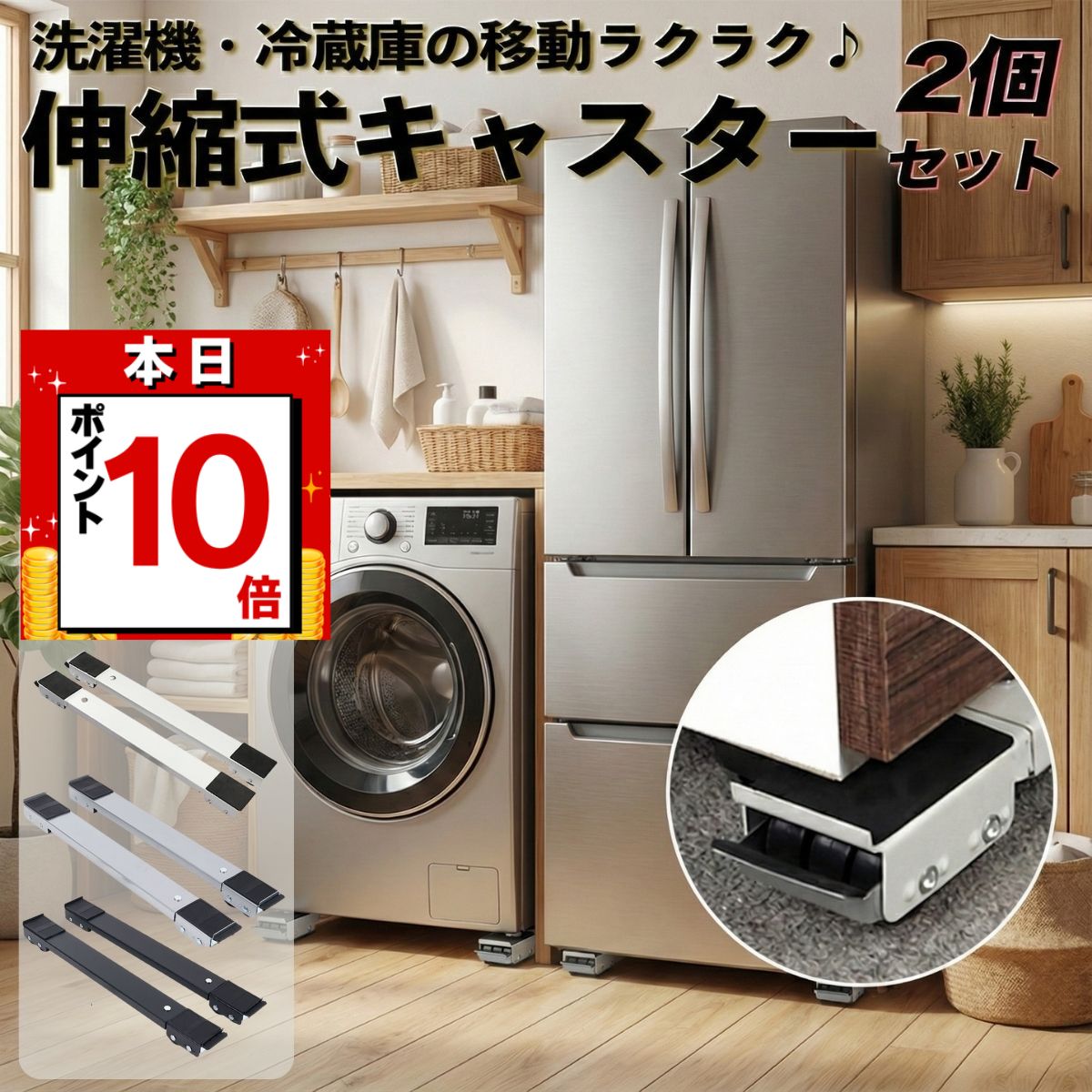 冷蔵庫 洗濯機 移動 キャスター 置き台 2個セット キャスター台 調節可能 キャリースタンド 伸縮 ランドリーラック 位置調整