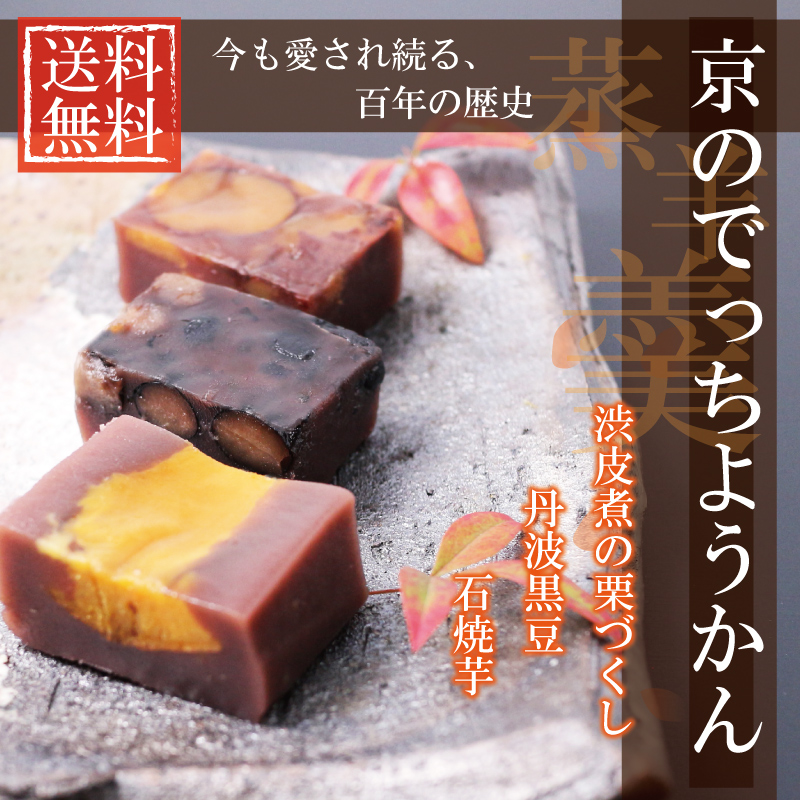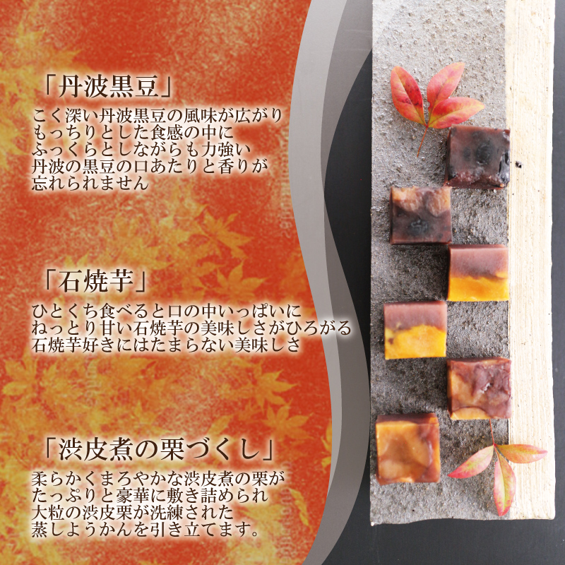 【内容量】京のでっちようかん 石焼芋・渋皮煮の栗づくし・丹波黒豆(各1本)