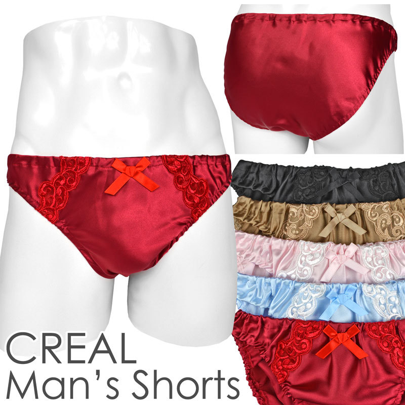 メンズ ビキニ ショーツ インゴム サテン チュールレース 男性下着