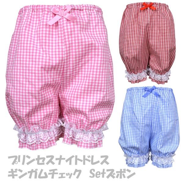 [在庫処分セール] プリンセス ナイトドレス ギンガムチェック(柄大きめ) セット用カボチャパンツ パジャマ キッズ 日本製