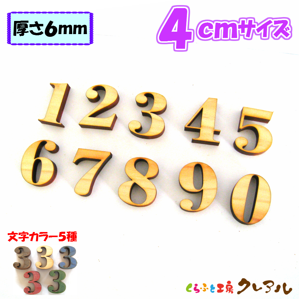 木製 数字 文字 4センチ 厚さ6ミリ カラー5色 文字3タイプ 切り文字 表札 結婚式 ウエルカムボード 看板 DIY ネーム プレート 誕生日