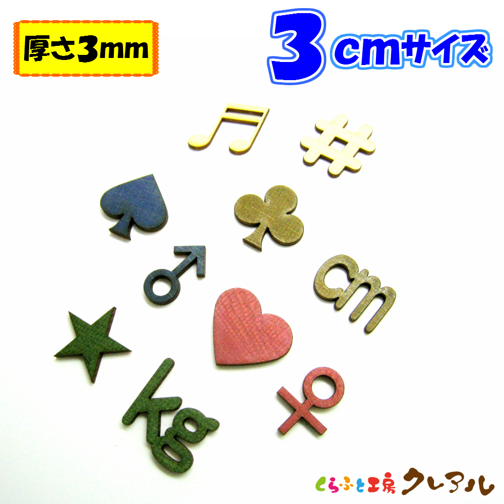 木製 記号 文字 3センチ 厚さ3ミリ カラー5色 文字3タイプ 切り文字 表札 結婚式 ウエルカムボード 看板 DIY ネーム プレート 誕生日