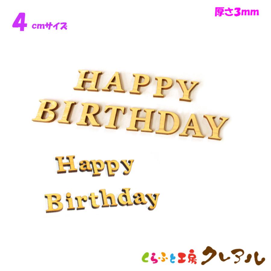 ハッピーバースディ 木製 アルファベット 文字 4センチ 厚さ3ミリ カラー5色 文字3タイプ 切り文字 看板 DIY ネーム プレート 誕生日 祝い