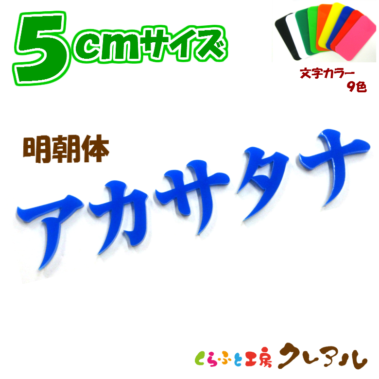 アクリル カタカナ文字 明朝体 5センチ カラー9色