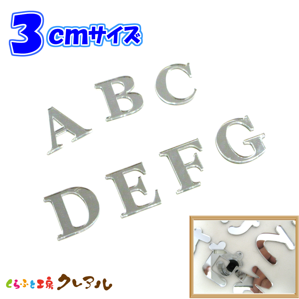3センチ ミラーシルバー アルファベット大文字 文字3タイプ