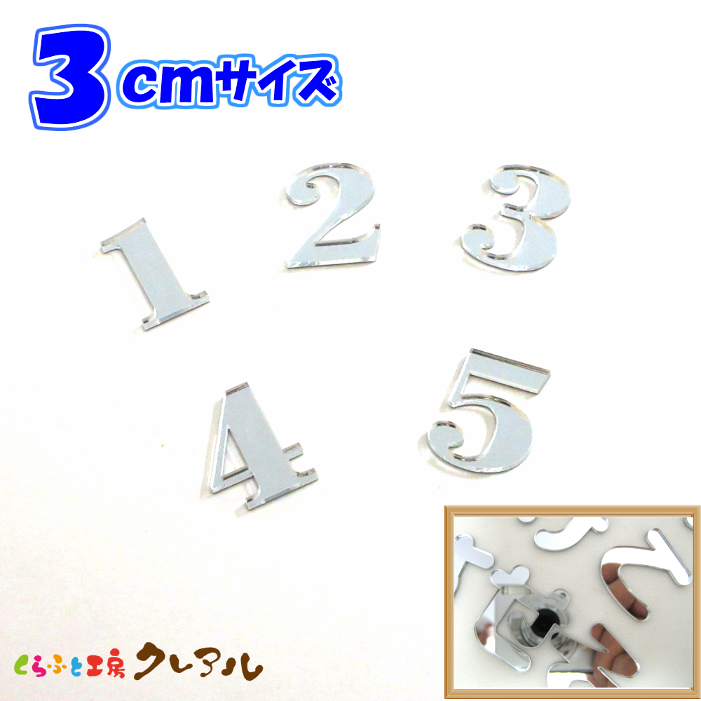 3センチ ミラーシルバー 数字文字 文字4タイプ