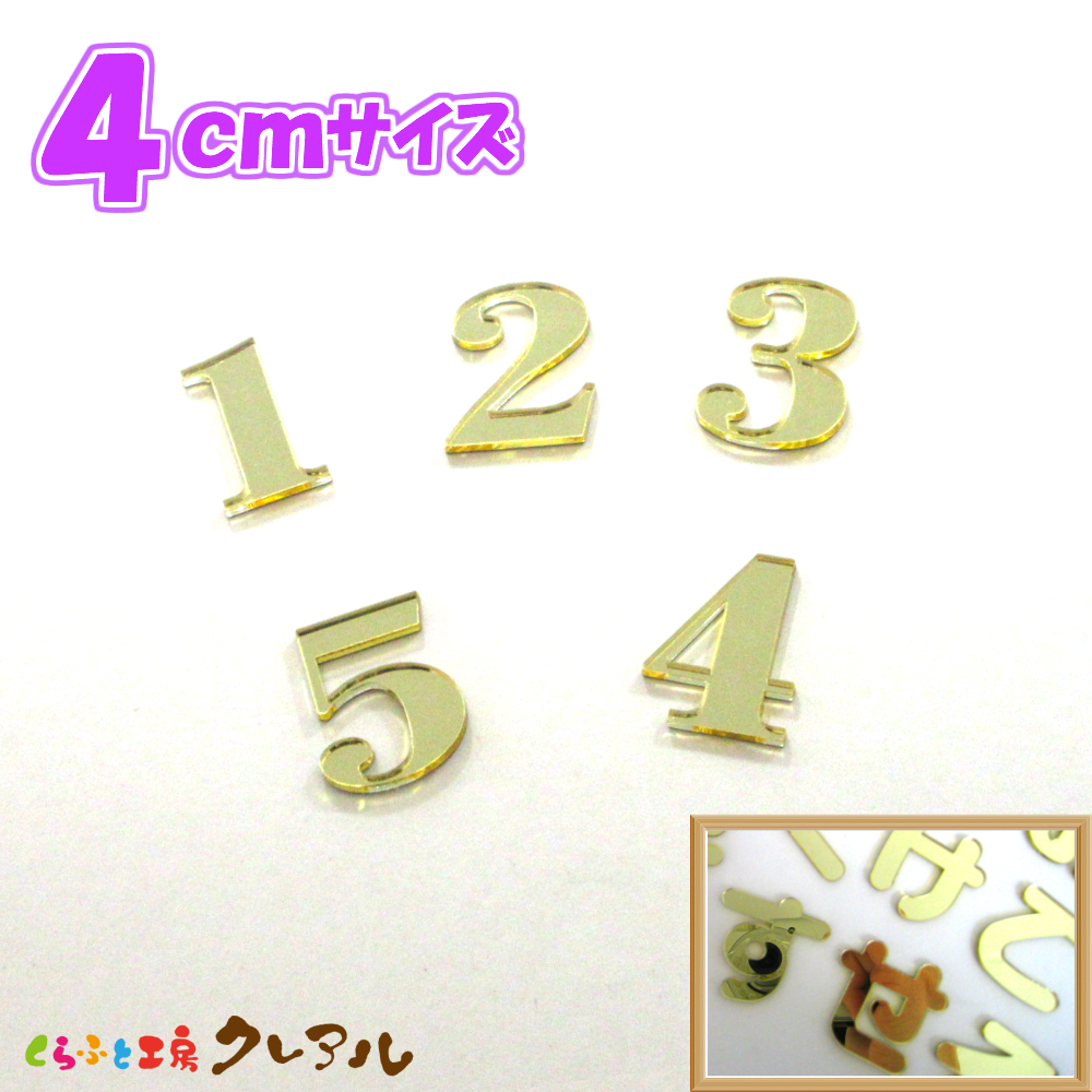 4センチ ミラーゴールド 数字文字 文字4タイプ