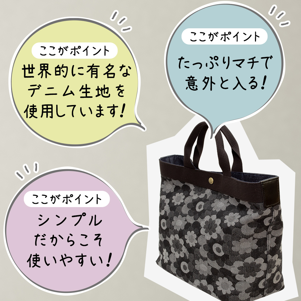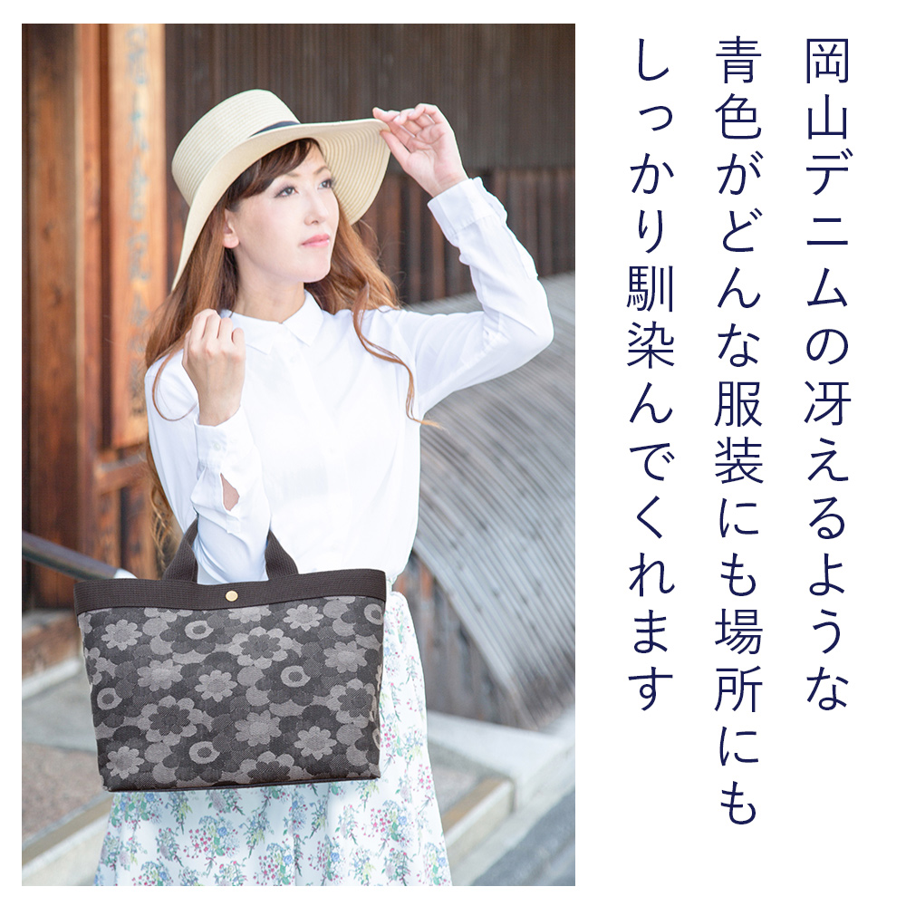 ★日本製 生産地:京都[岡山デニムマーガレット柄を使ったトートバッグ]