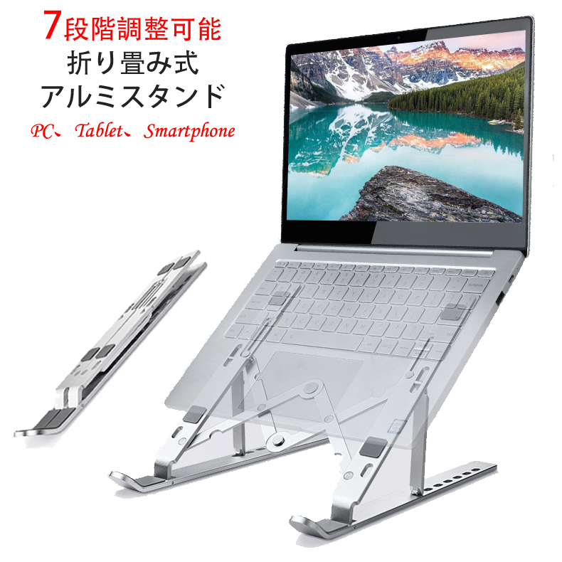 ノートパソコン タブレットPC スマートフォン アルミスタンド 7段階角度調節可能 折りたたみ (卓上 ノートPC 姿勢改善 ThinkPad MacBook iPad Air mini Pro)