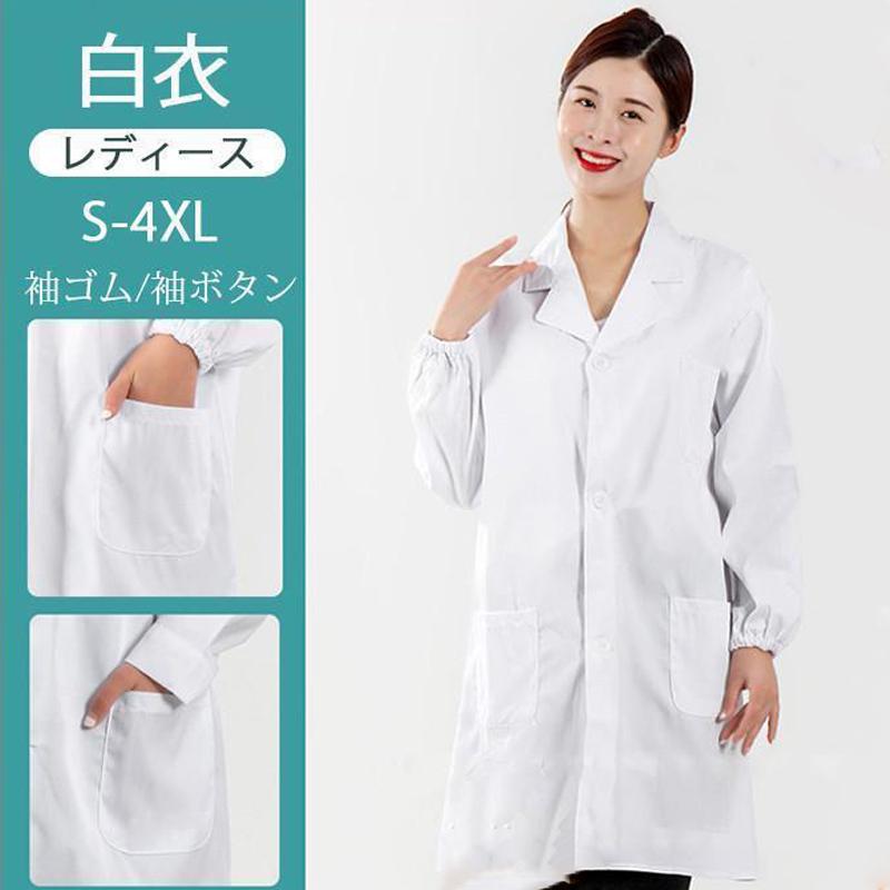 白衣 レディース 安い 大きいサイズ 女性用 袖ゴム シングル診察衣 実験衣 袖口ボタン 長袖白衣 医師 女医 医者 ドクターコート 厚手