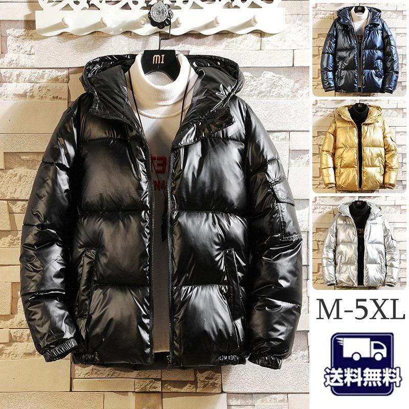 ダウンジャケット メンズ 中綿ジャケット 中綿入り フード付き 光沢感アウター 保温 秋冬 暖かい 防寒着 シンプル カジュアル アウトドア 通勤