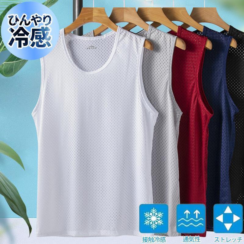 タンク メンズ インナー メッシュ ノースリーブ 冷感素材 クルーネック 肌着 下着 サマーウエア 蒸れない 無地 涼しい スポーツ 夏