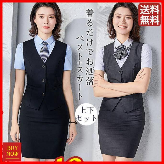 事務服 スーツ 上下セット スカートスーツ 秋 春 フォーマル 制服 オフィス ビジネス 通勤 タイトスカート 着易さ抜群 洗える