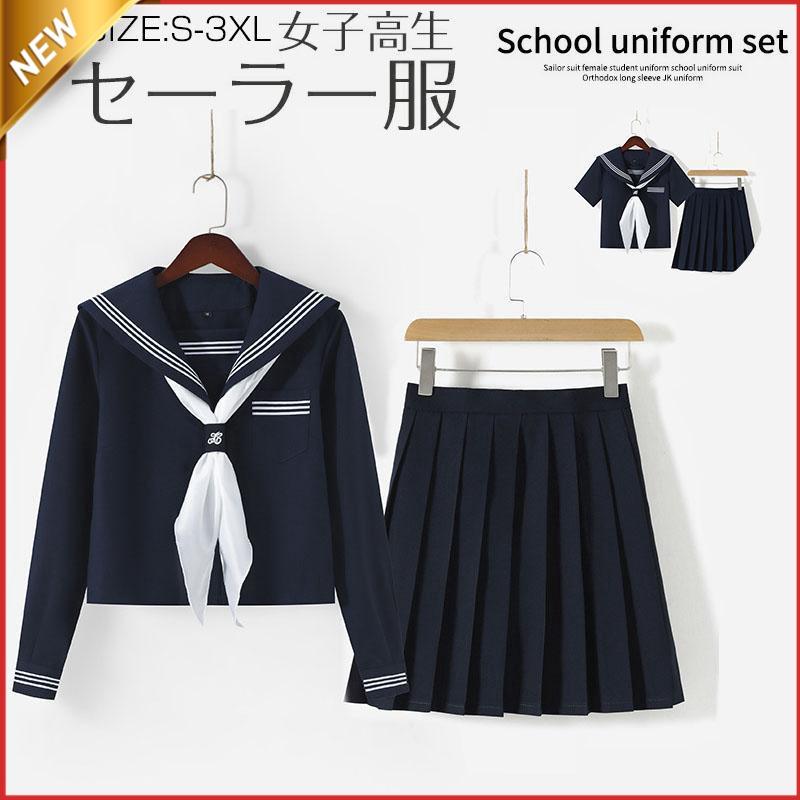 【大特価】女子高生 制服 セーラー服 女子高校生 学生服 半袖/長袖 セットアップ 上下セット JK制服 文化祭 学園祭 可愛い 蝶ネクタイ付き 卒業式スーツ