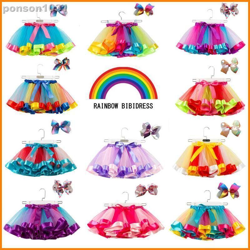 カラフル彩衣装★ふんわり広がる★カラーチュチュスカートチュチュスカート★ダンス衣装 舞台/ダンス★幼児、キッズサイズ!リボンセットレインボー色チュチュ