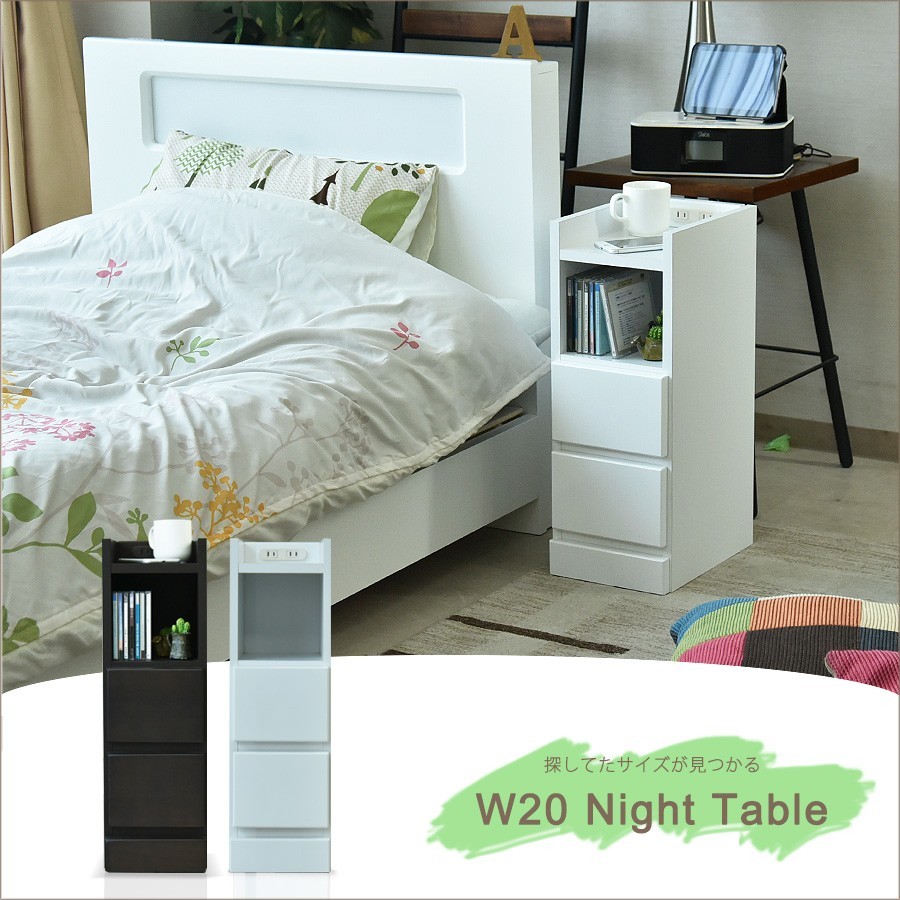 ナイトテーブル 消灯台 幅20cm 木製 完成品 日本製 大川家具 収納スペース付き