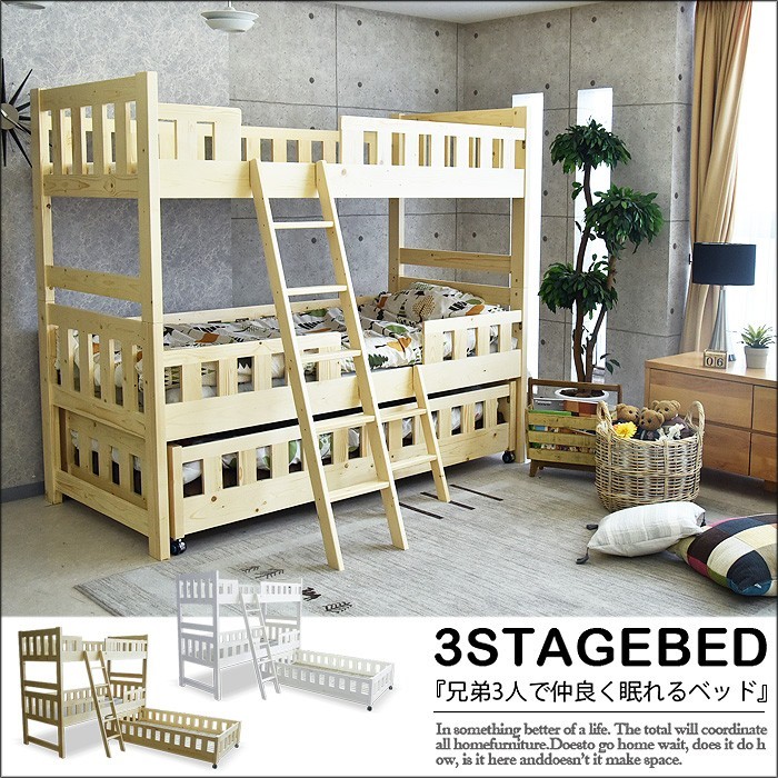 3段ベッド 親子ベッド 木製 無垢 子供から大人まで 2段ベッド
