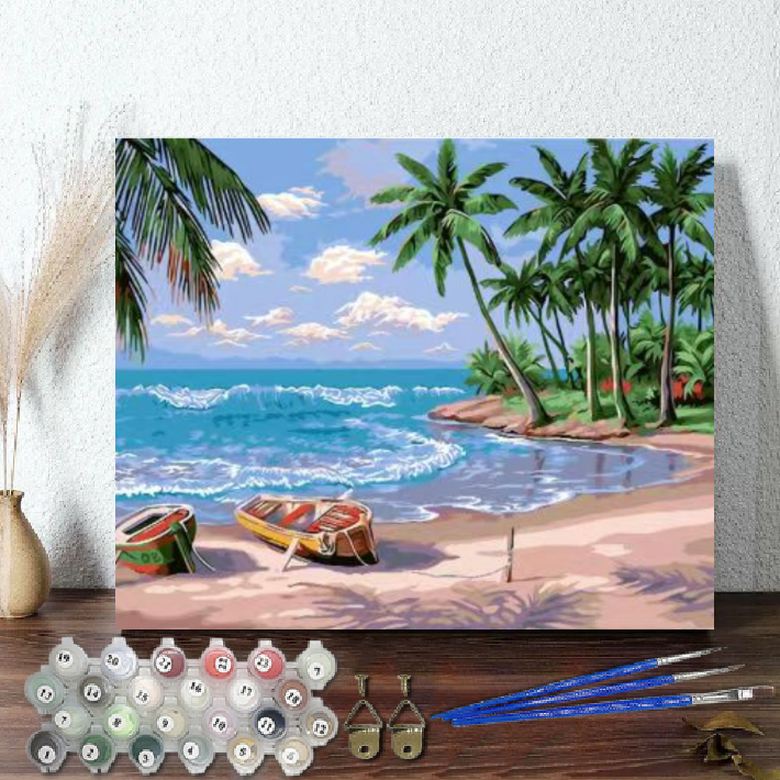 油絵 絵画 壁掛け 大人の塗り絵 セット インテリア 美術品 ビーチ1 DIY絵 キャンバス 数字 壁デコ 壁装飾 名画 手作り 風景画 敬老の日 母の日 父の日
