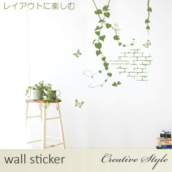 商 品 名:ウォールステッカー 木 花 おしゃれ 北欧 インテリアシール 猫 植物 トイレ 植木鉢 英文 英字 壁紙シール ウォールシール アイビーとレンガ