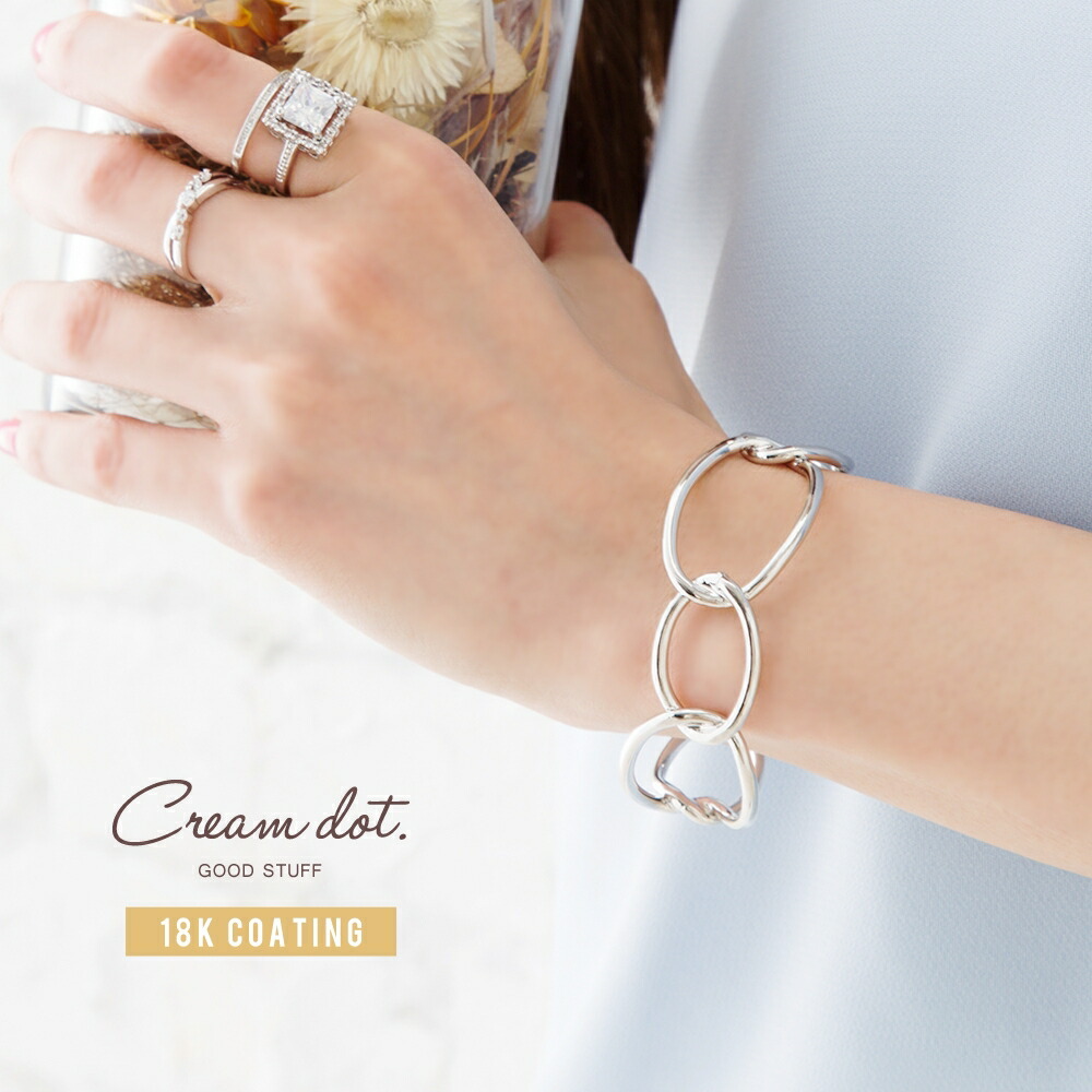 バングル 金属アレルギー 18kコーティング C型 オープンバングル ブレスレット メタル チェーンモチーフ 太め 大人 ゆうパケット送料無料