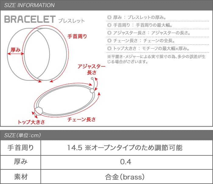 ■サイズ手首周り:14.5cm ※オープンタイプのため調節可能厚み:0.4cm