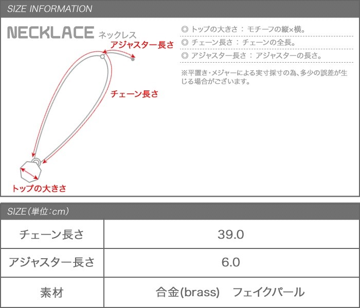 ■サイズチェーン長さ 39.0cmアジャスター長さ 6.0cm