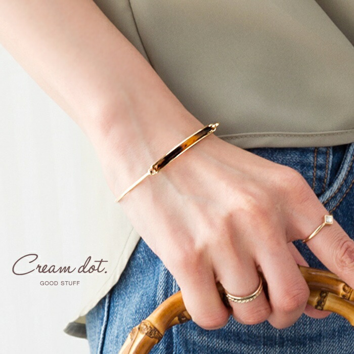 べっ甲風モチーフがコーデにアクセントを添える華奢ラインバングル。片手でパッと着脱できちゃう