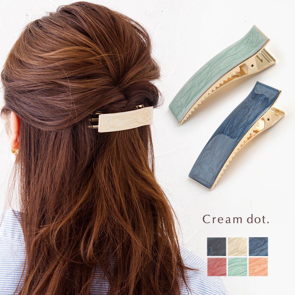 ラメ入りマーブル柄のヘアクリップ。落ち着いた色合いとひとつひとつ模様の異なるマーブルがこなれ感を演出し、ヘアスタイルをさりげなくランクアップ。シンプルなフォルムで様々なシーンに活躍してくれます◎