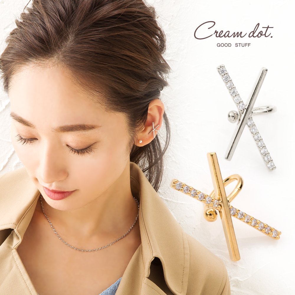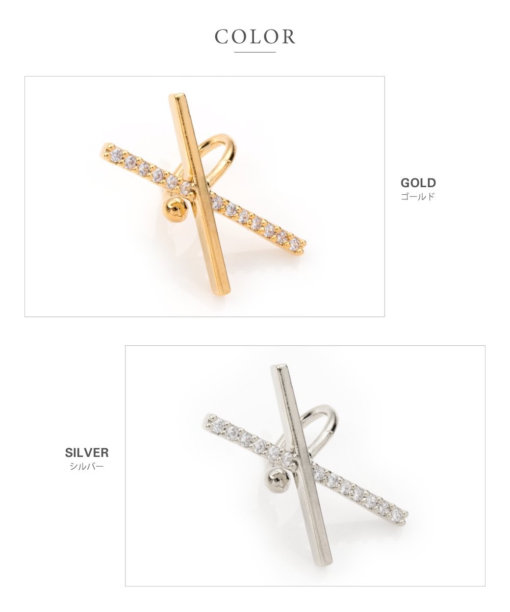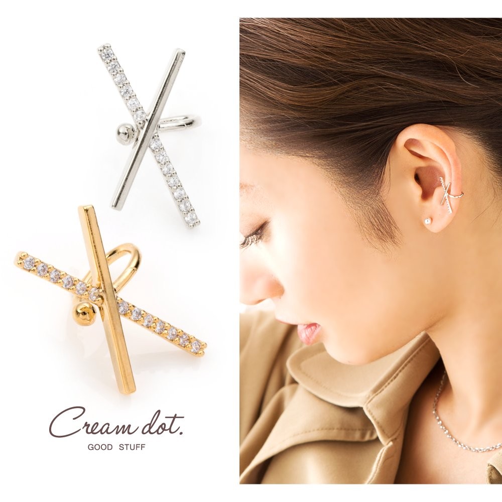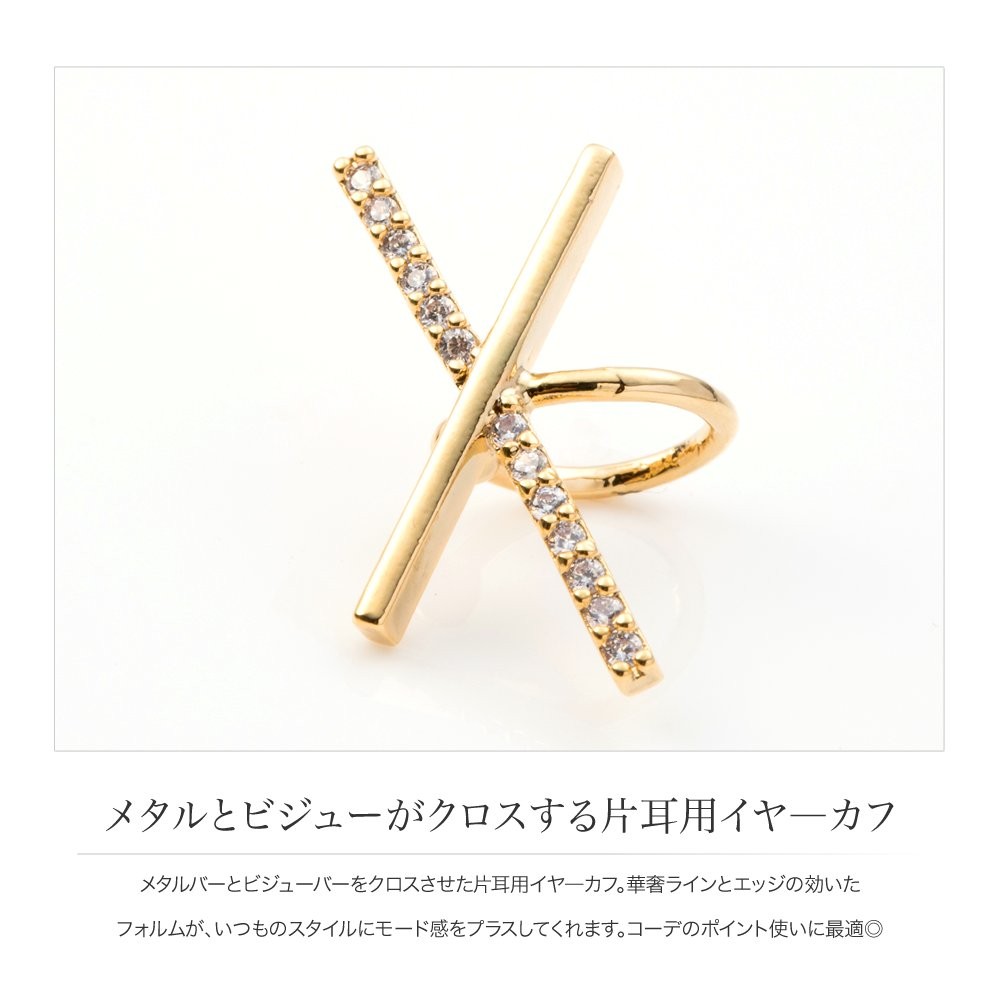 【本日限定!全品10%OFFクーポン】イヤーカフス イヤーカフ カフス 重ね付け 開けない 痛くない ビジューバー クロス Xモチーフ メタル シンプル