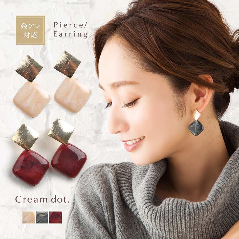 スクエアメタルとマーブル模様のカラーストーンがしっとり艶めくピアス/イヤリング。ヘアライン加工を施したメタルプレートとぷっくり丸みを帯びたマーブルストーンが絶妙にマッチしたおすすめアイテムです。