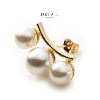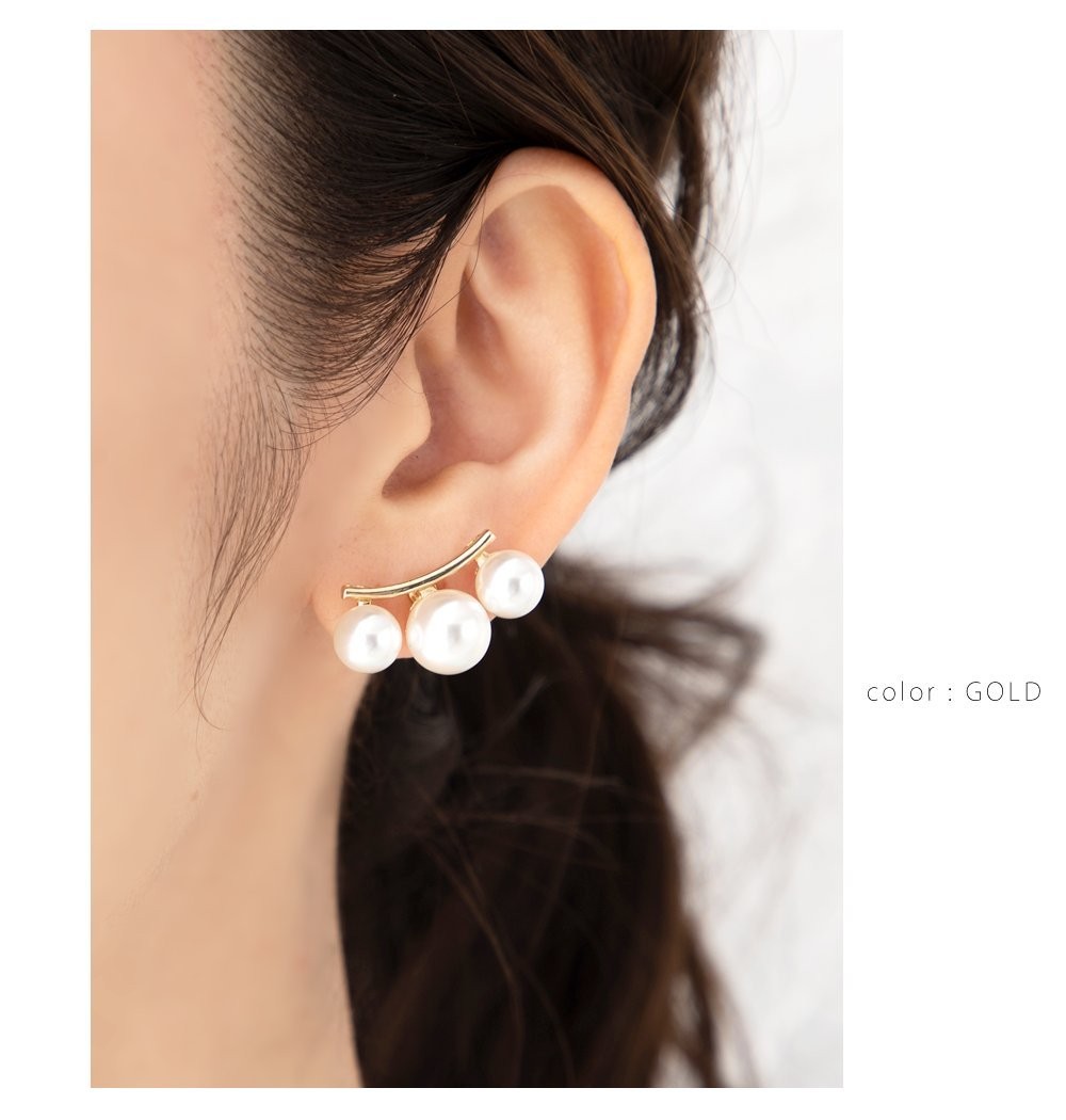 金属アレルギー対応 選べる ピアス イヤリング ニッケルフリー 18kコーティング 大ぶり 3連パール カーブ お呼ばれ