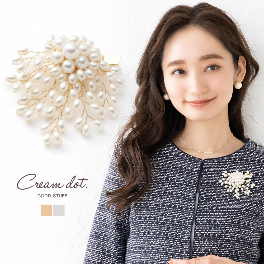 2種類の形違いのパールをMIXしたフラワーモチーフのコサージュ。ワイヤー部分を動かすことによりお好みの位置に調節をしたりアレンジも可能◎スタイルを品良く華やかにしてくれる、特別感たっぷりなアイテムです。