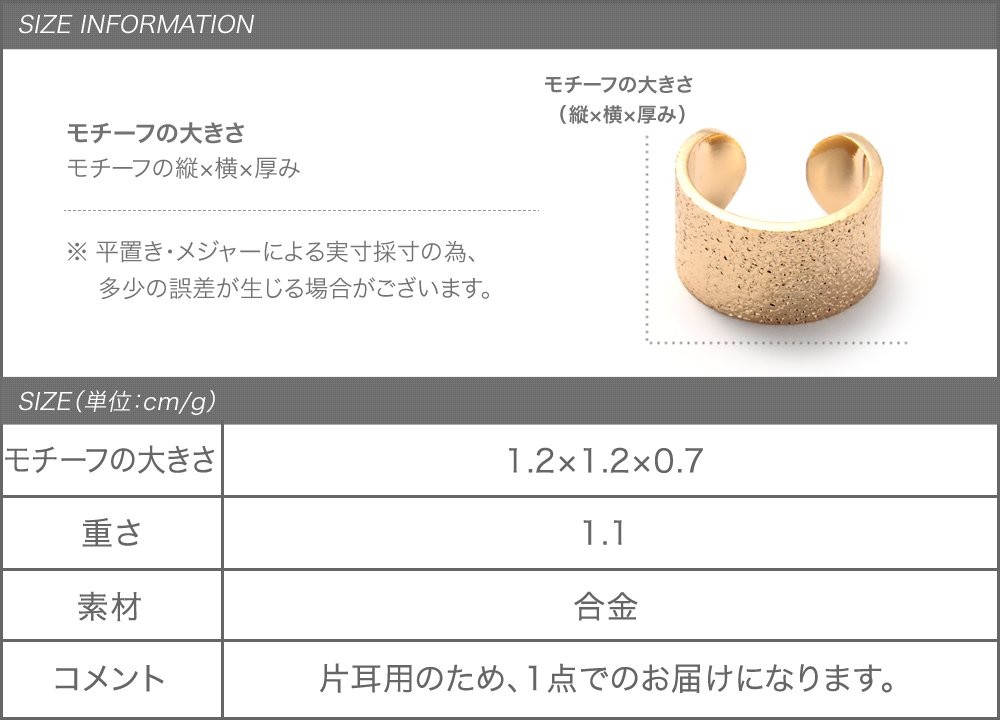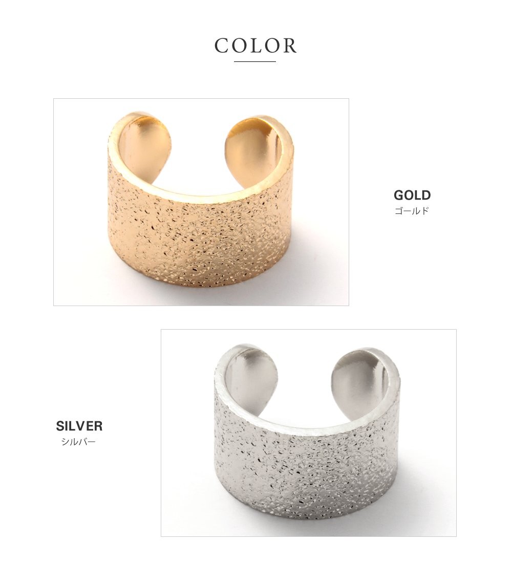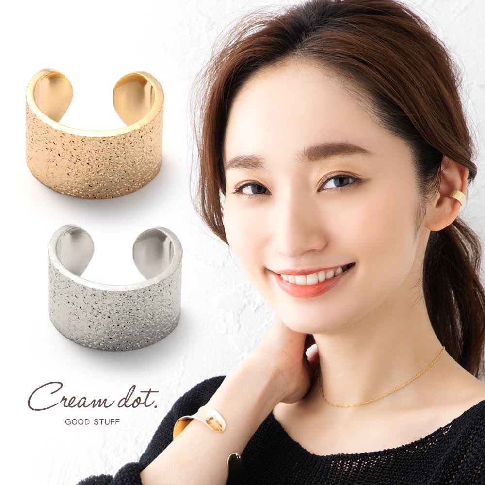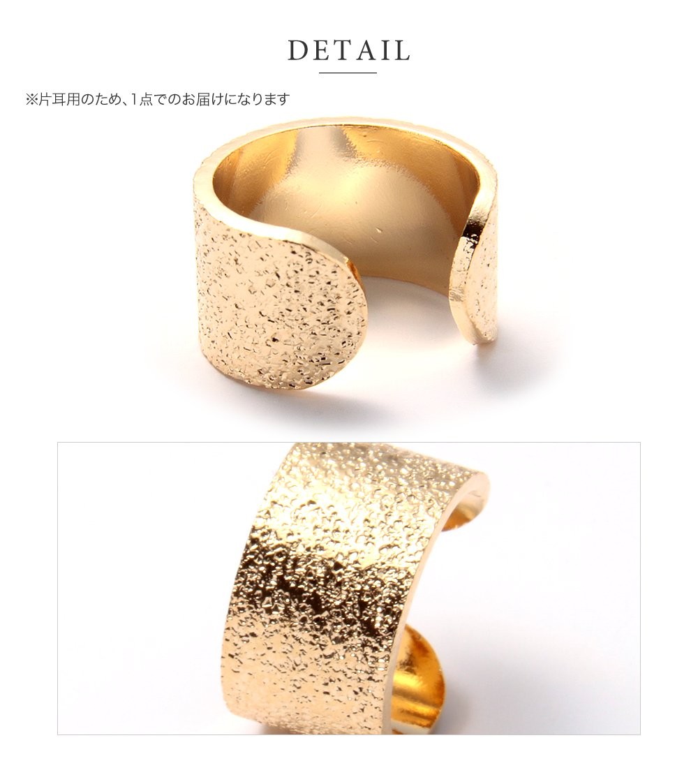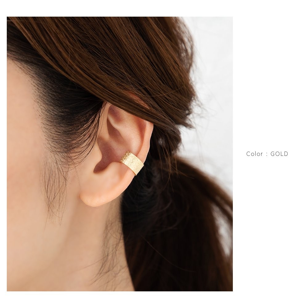 ニュアンスのある梨地テクスチャが魅力のワイドメタルイヤーカフ。シンプルかつハンサムな雰囲気を漂わせるデザインで、大人カジュアルスタイルのアクセントにぴったりです。お手持ちのピアスと組み合わせるのも◎